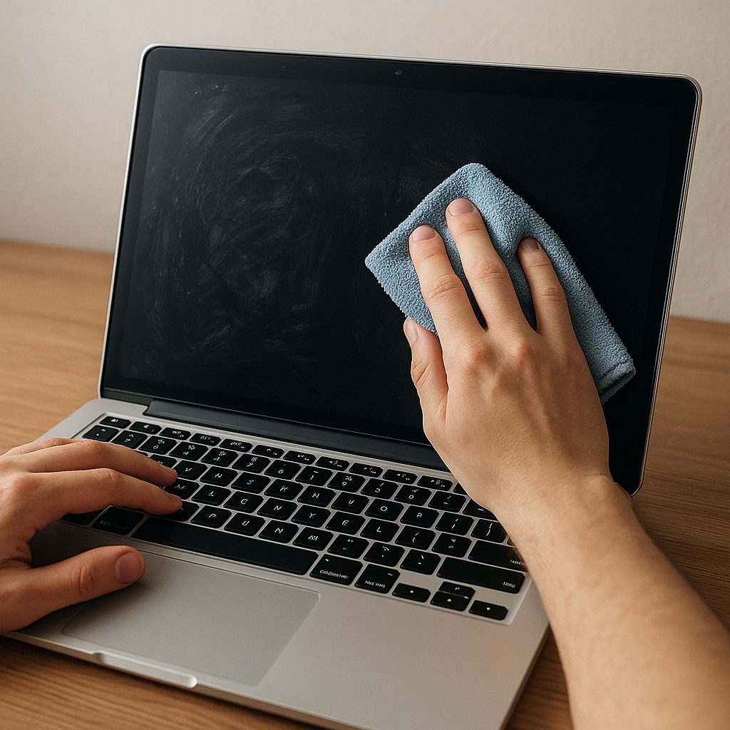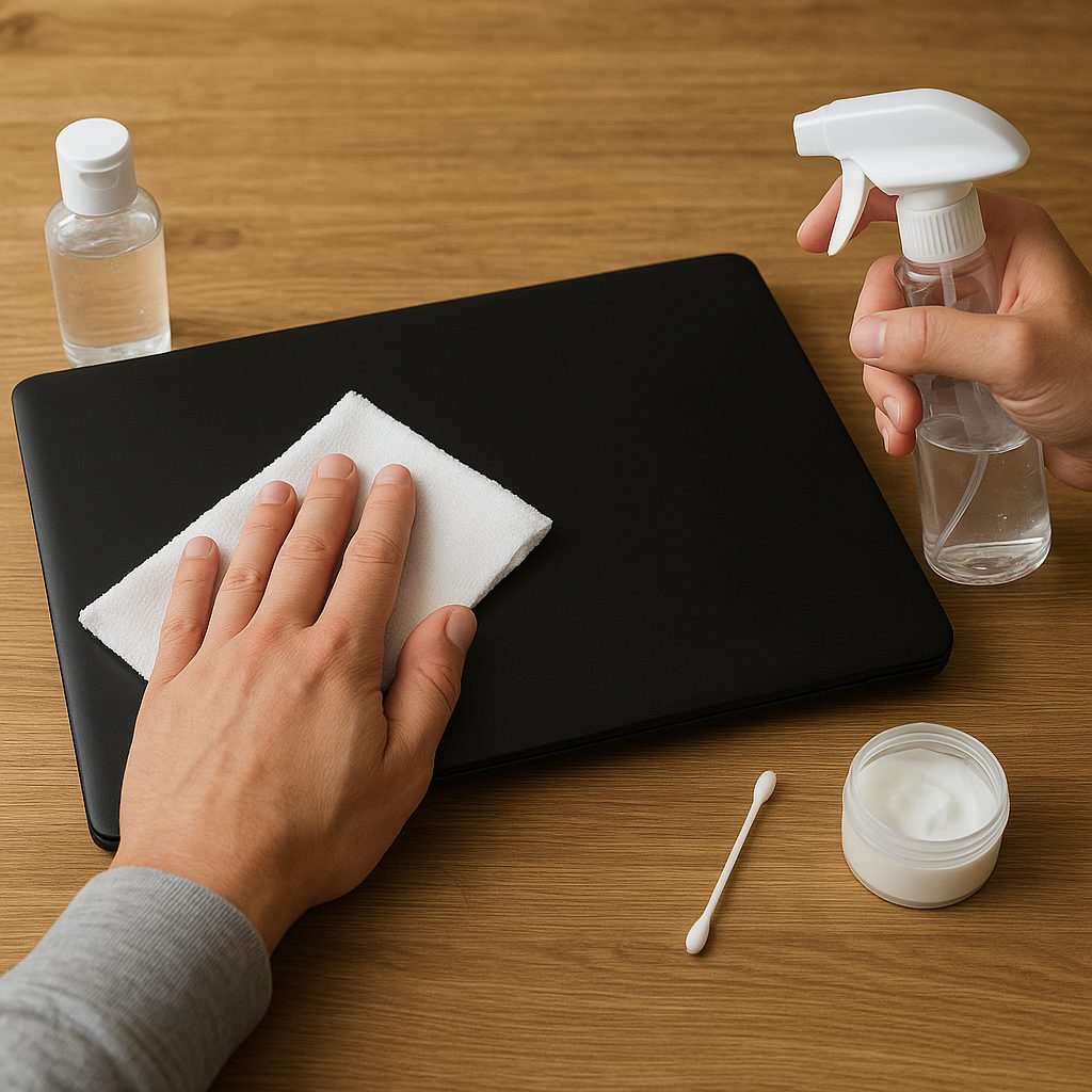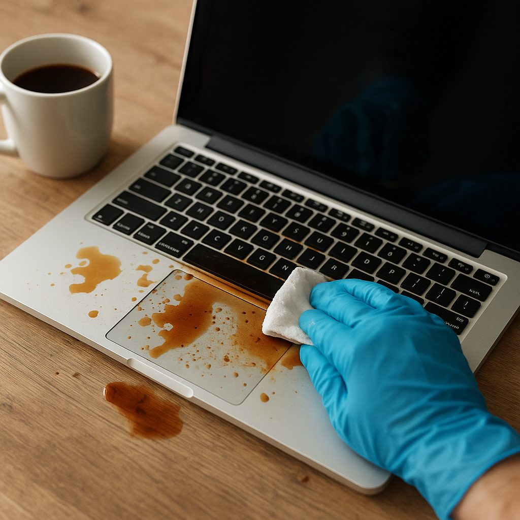 - Osuszenie zewnętrznych powierzchni – użyj miękkiej szmatki lub ręcznika papierowego. Unikaj silnego pocierania, by nie wepchnąć płynu głębiej pod klawisze.