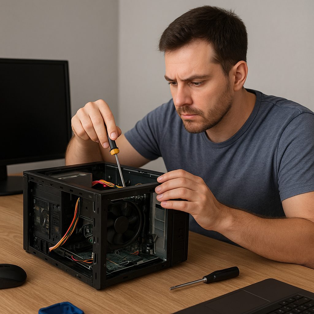 Pierwszym etapem naprawy jest dokładna kontrola fizyczna komputera. Wyłącz zasilanie, otwórz obudowę i zwróć uwagę na stan kondensatorów oraz czystość wnętrza. Użyj sprężonego powietrza, by usunąć kurz i pył. Następnie: