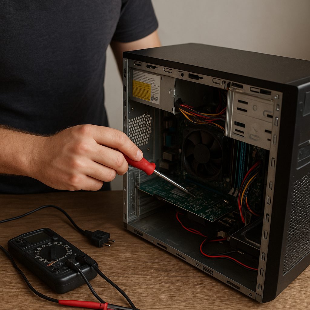 • Zmierz napięcia na złączach zasilacza (12 V, 5 V, 3,3 V). Odchylenia większe niż 5% wskazują na uszkodzenie zasilacza.